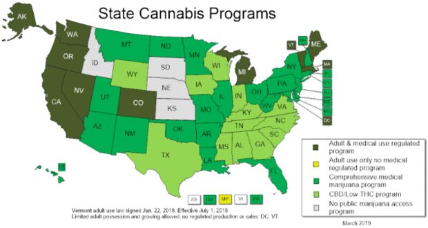 Most states have authorized the use of marijuana for medical or recreational purposes, but it’s still a prohibited substance under the federal Controlled Substances Act.